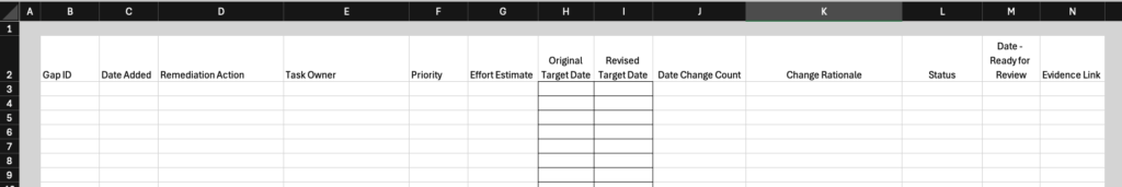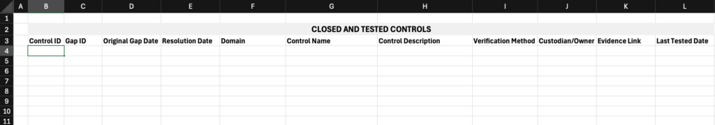 Format: 3 Excel Templates, and a Controls Management Template in PDF, Pages and Word