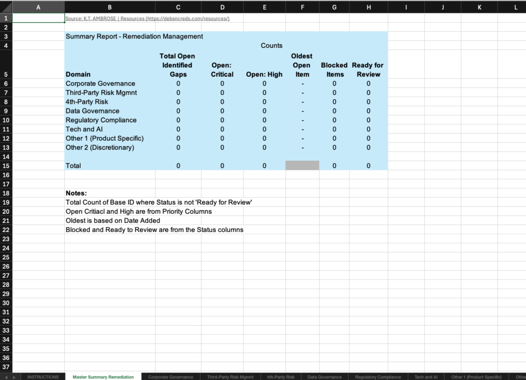 - Remediation Tracking Worksheet with 11 tabs